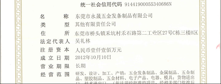 东莞市永晟五金发条制品有限公司(以下简称永晟精密发条),是广东恒晟控股集团的全资子公司,注册资金1100万元,公司定位为大中型企业提供精密发条的全套解决方案,做优质的精密发条研发制造商。工厂位于世界制造中心——东莞市桥头镇,厂房面积20000多平方米,是各类精密发条制品的研发、生产型企业,现有职工200多人,专业技术人员20多人,年生产能力8000万条。
