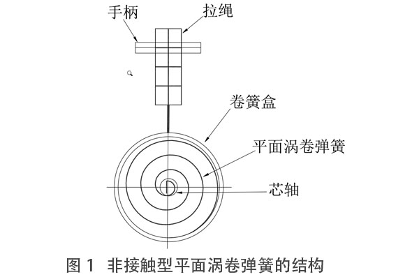 平面涡卷弹簧是将等截面的细长材料绕制成平面螺旋线形的弹簧,平面涡卷弹簧的制作较为简单,它的刚度较小,一般在静载荷下工作。由于绕卷圈数可以很多,变形角打,能在较小的体积内储存较多的能量。它的材料截面形状可以是长方形的(钢带)或圆形的(钢丝)。平面涡卷弹簧根据相邻圈是否接粗分为两类:非接触性和接触性。我们在设计一种适合家庭用的划船运动健身器时,对其阻尼问题进行了多方案的讨论比较,最后采用了外端铰接的非接触型平面涡卷弹簧作为初级阻尼(图1),使用后达到了预期的效果。