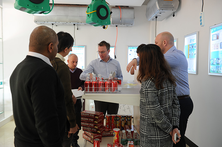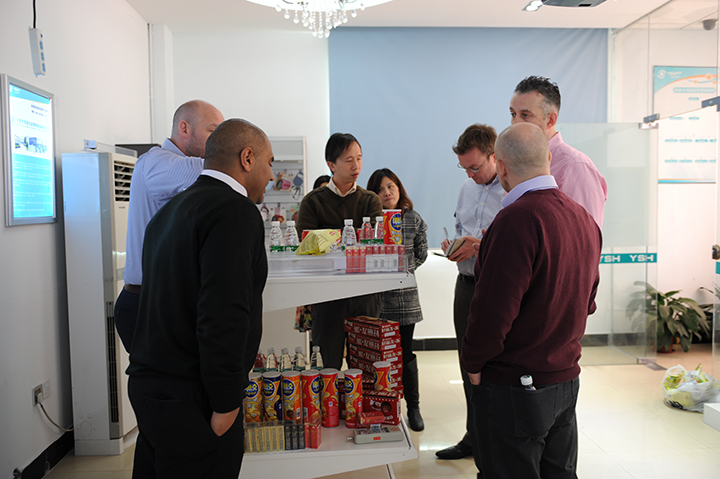 此次客户造访,主要参观考察了两款产品,发条是其重点考察对象,另一款则是我司新近研发的自动推进货架,自动推进货架是目前零售市场上的新星,真正意义上的革新了相关商品的陈列和摆放。