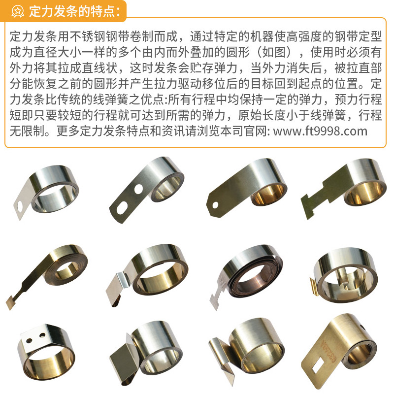生产精密的发条弹簧首先需要选好材料以保证弹簧寿命不会过低, 东莞市永晟五金发条制品有限公司,专业生产发条弹簧二十年,发条寿命按实际测试高达3万次以上,按照每天三次的使用频率计算,发条的使用长达20年。此外,永晟的发条均浸泡了食品级润滑油,避免在推进过程中出现手感生涩,有顿挫感的现象,大大提高了使用舒适度。发条产品种类繁多,可在永晟官网查询,或者致电我们的业务专线,0769-81039998,我们将为您进行耐心的解答。