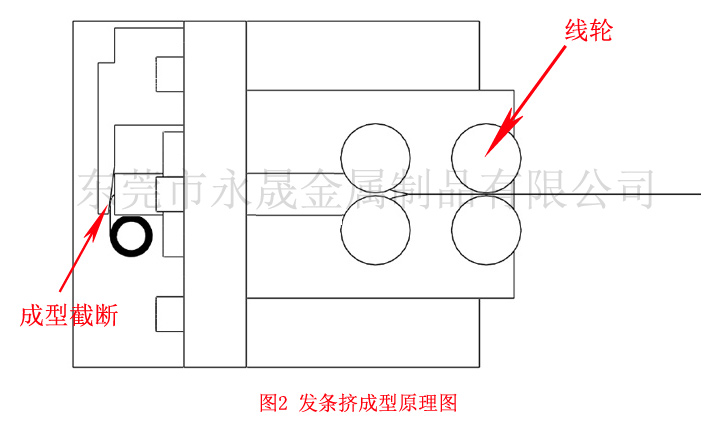 当时永晟人经过多次调研和论证后,大胆推测出线弹簧的生产工艺原理是可以实现发条生产的,永晟在当时生产弹簧机的厂家中挑选了三家外资公司,其中有两家的工程师在我们找上门寻求协助时,直接告诉我们说这种弹簧机是实现不了发条生产的,拒绝了提供机器协助试验的要求,幸好来自台湾的侨鼎的工程师愿意提供协助,永晟发条现在的董事长亲自到侨鼎先学习了三个月的弹簧机操作,在熟练掌握了弹簧机的成型工艺后,历经1年多艰辛的开发,终于成功发现了现在广为流传的发条挤成型工艺(图2),当然,侨鼎弹簧机因为先接触这一新的发条生产工艺,很多弹簧厂都通过桥鼎了解到这种成型工艺,并购买同型号弹簧,慢慢的有越来越多的使用桥鼎弹簧机的弹簧厂开始从事发条的生产,价钱也是一天天往下调,到现在,国外发条基本上在国内已经很难看到,通过近15年的高速成长,永晟发条也成为年产8000万精密发条的定制基地,同时产品也远销三十几个国家和地区,在发条市场上占有了很大的市场份额。