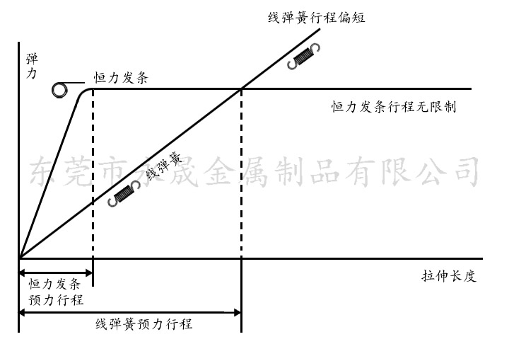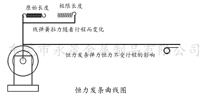 恒力弹簧也称恒力发条,是用不锈钢带卷制而成,通过特定的机器使高强度的钢带定型,当外力将其拉直后,发条会自然卷回并产生弹力,然而达到我们的目标在移位后能回到我们指定的起点。定力发条比传统的线弹簧之优点:所有行程中均保持一定的弹力,预力行程短,即只要较短的行程就可达到所需的弹力,原始长度小于线弹簧,行程无限制。